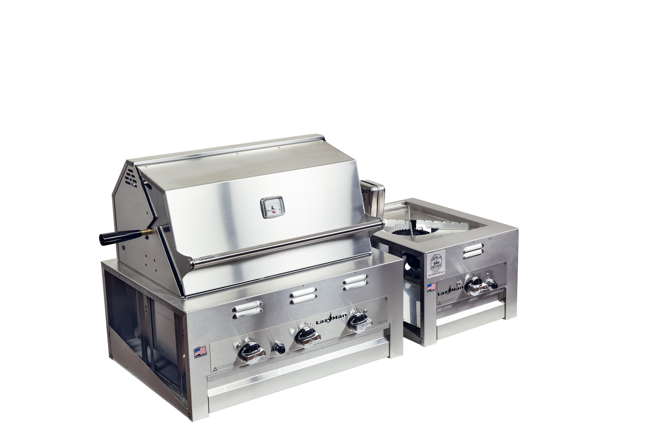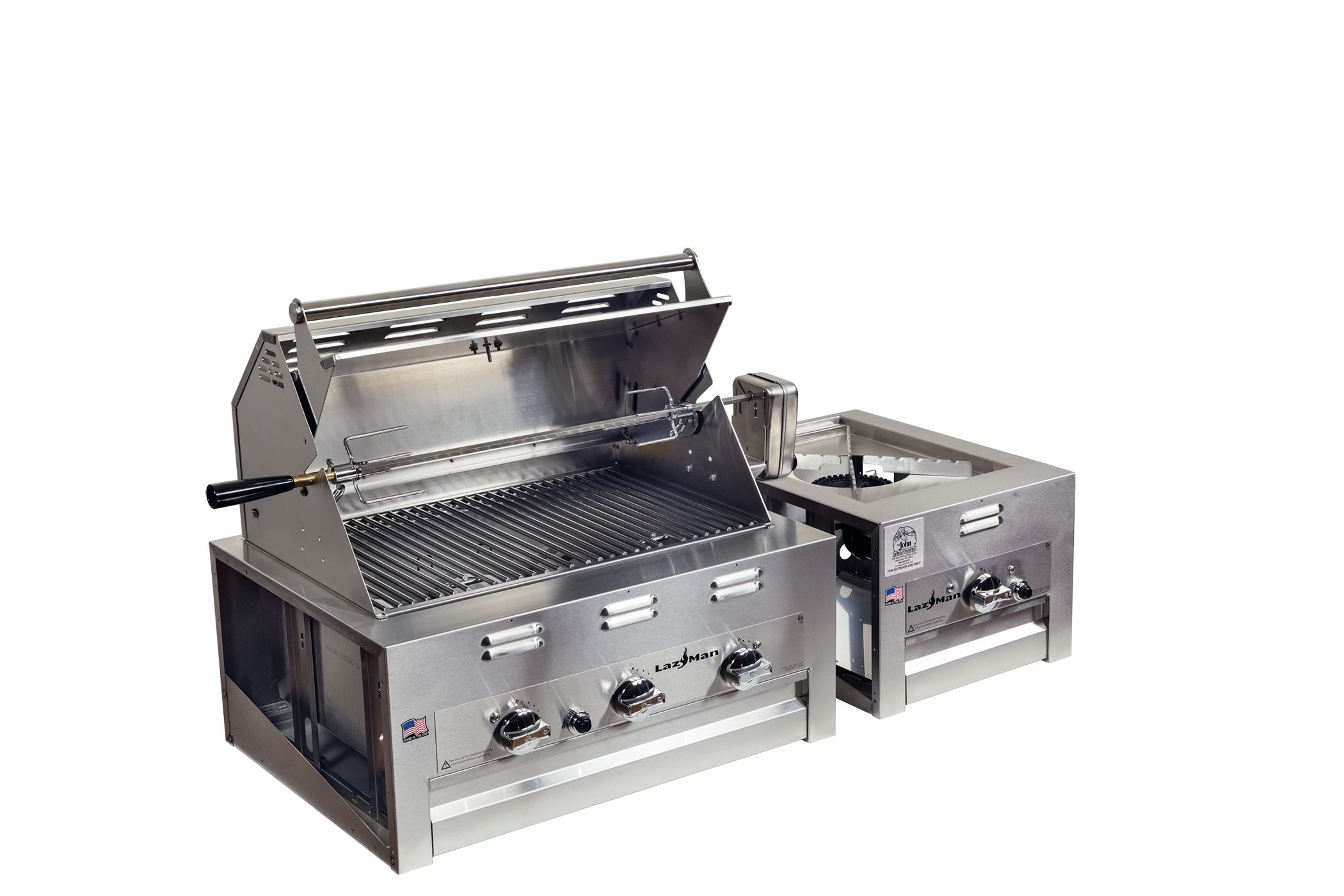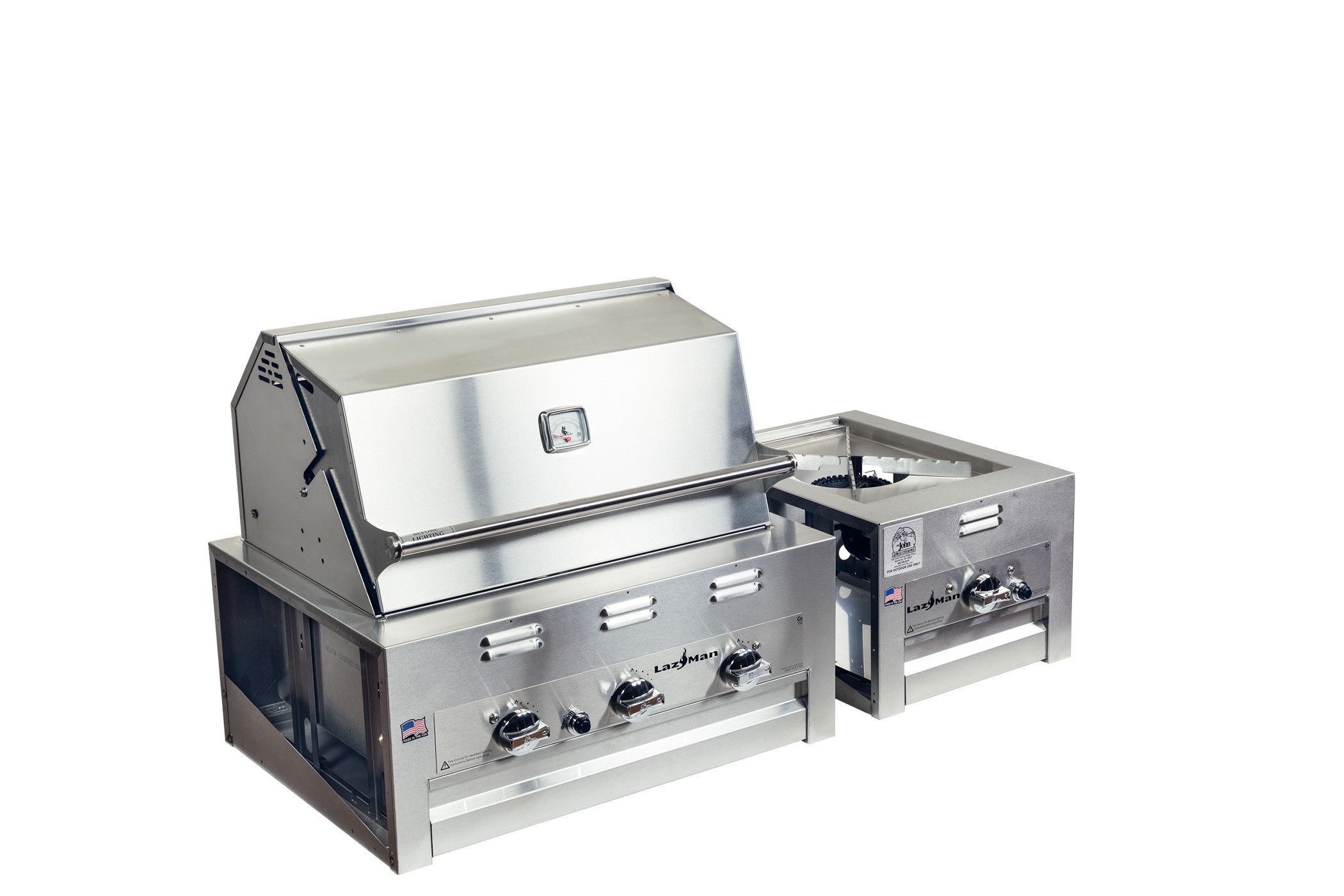 Three independently controlled 12,000 BTU burners, unique firebox design to prevent flare-ups, and convenient electronic ignition are coupled with lava rock to produce commercial results in a grill built for residential use.