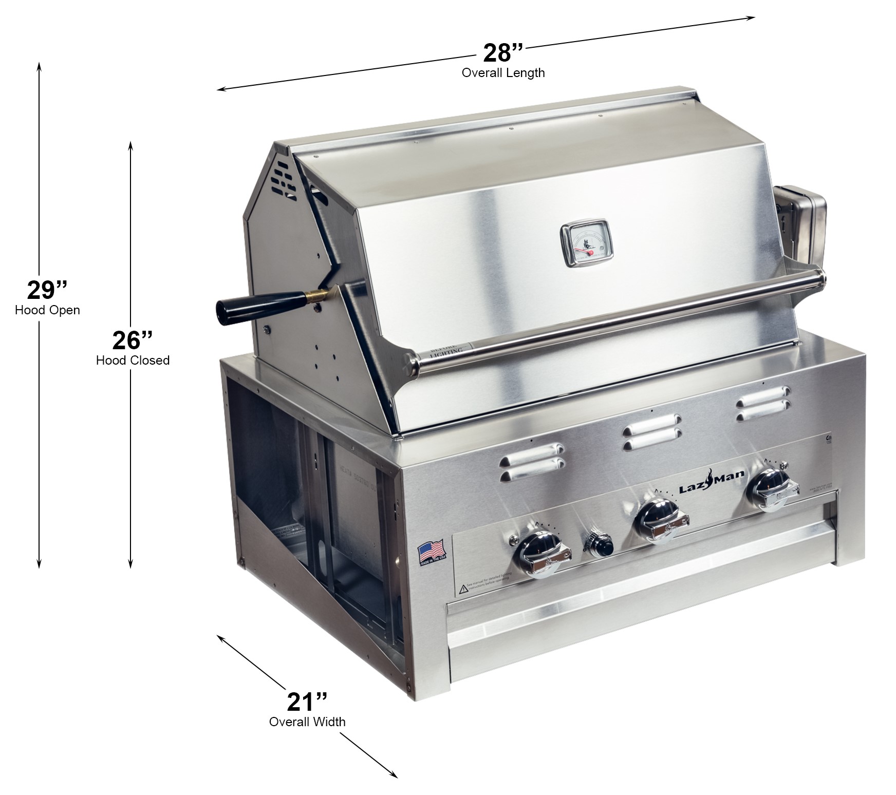 Stainless Steel Cooking Hood traps in heat, moisture, and smoke for great grilling taste. Recommended hood for all 210-28 built in grills with no clearance issues. Requires 7"-8" of back clearance for the hood to open properly.