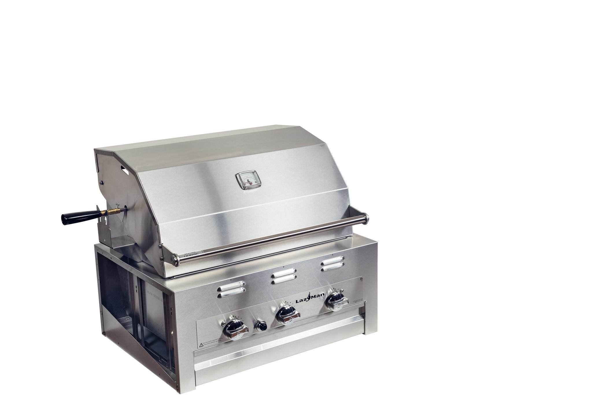 Three independently controlled 12,000 BTU burners, unique firebox design to prevent flare-ups, and convenient electronic ignition are coupled with lava rock to produce commercial results in a grill built for residential use.