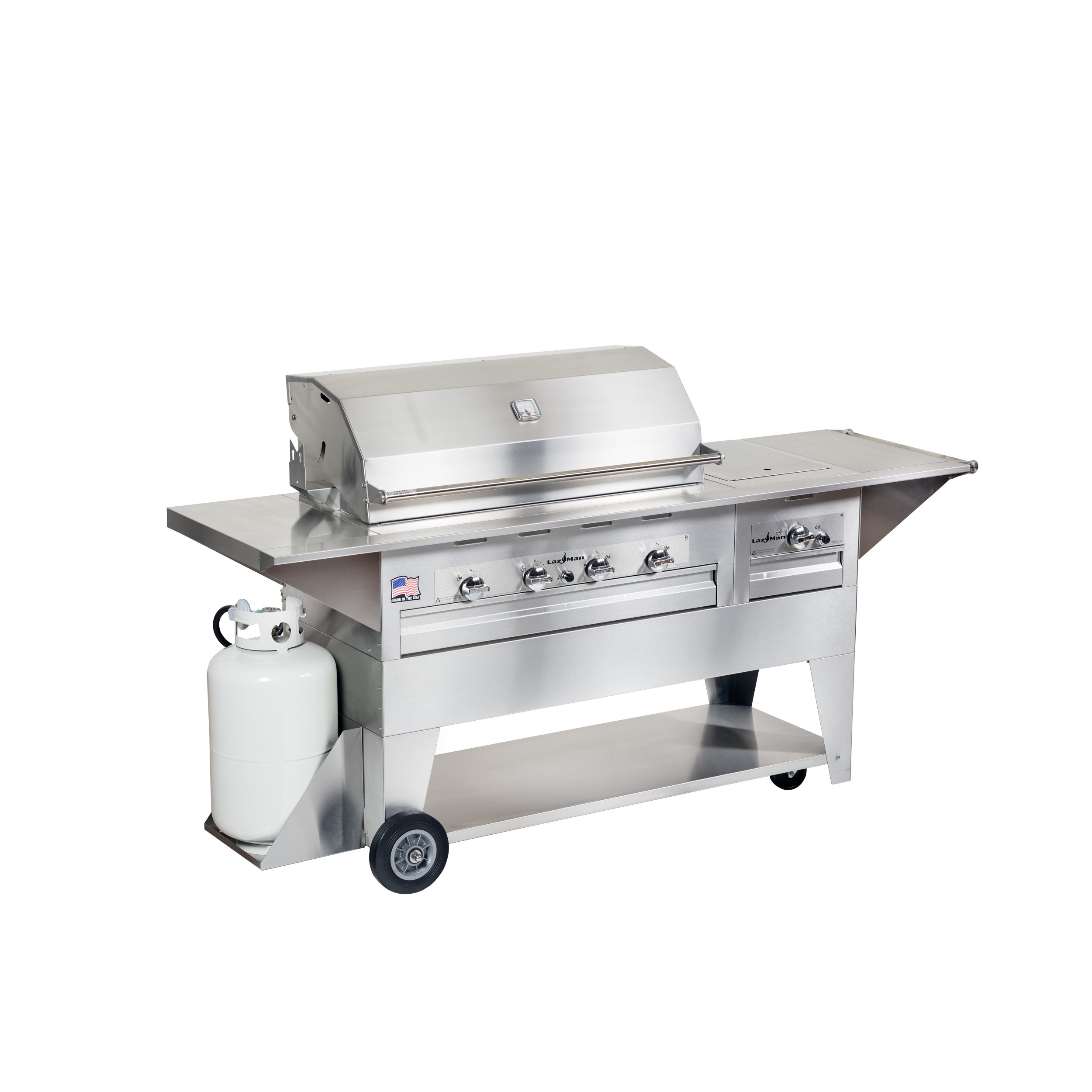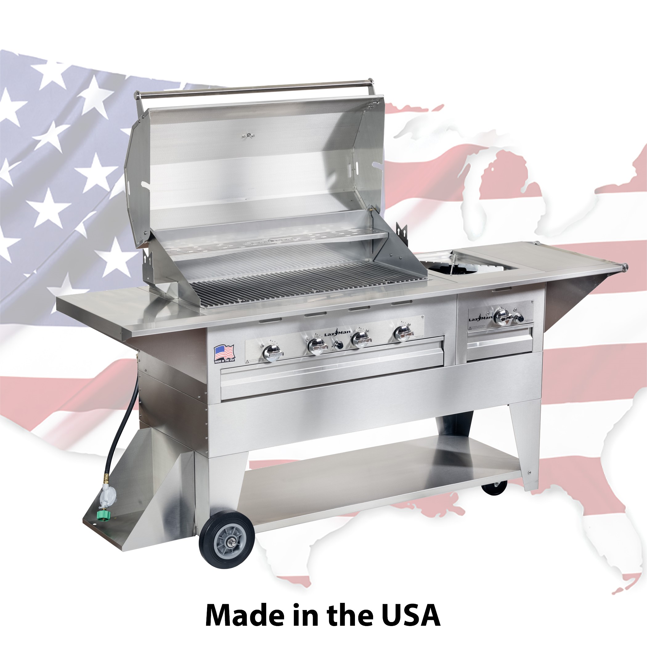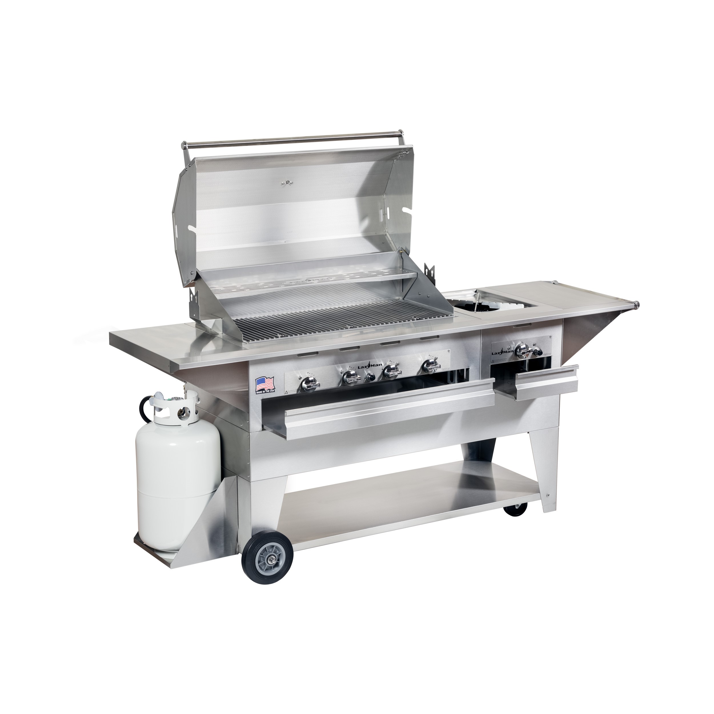 210-40/20 Radiant Mobile Gas Grill with Stainless Steel Grates, Hood, Hood Mounted Rotisserie, and Single Burner Range