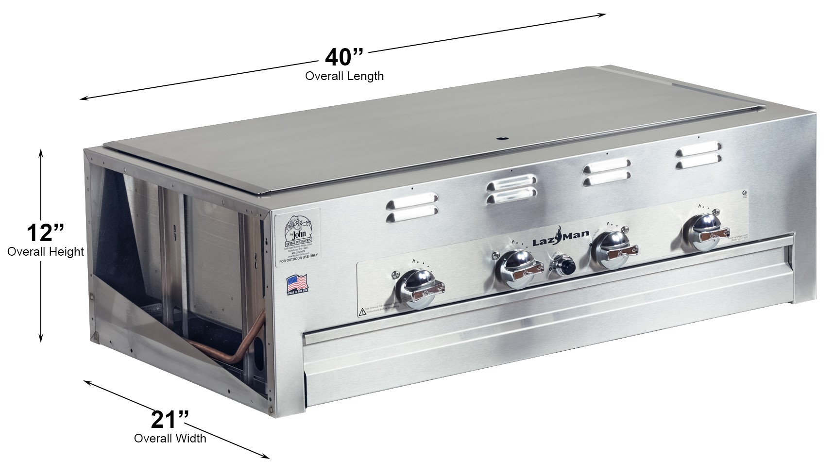 Four independently controlled 12,000 BTU burners, unique firebox design to prevent flare-ups and convenient electronic ignition are coupled with lava rock to produce commercial results in a grill built for residential use.