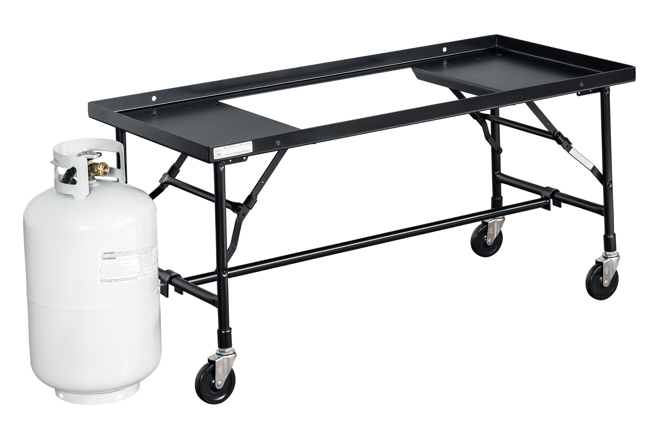 A3P Table Top Gas Grill with Stainless Steel Grates, Hood, Folding Leg Cart, Leg Brace, and Tank