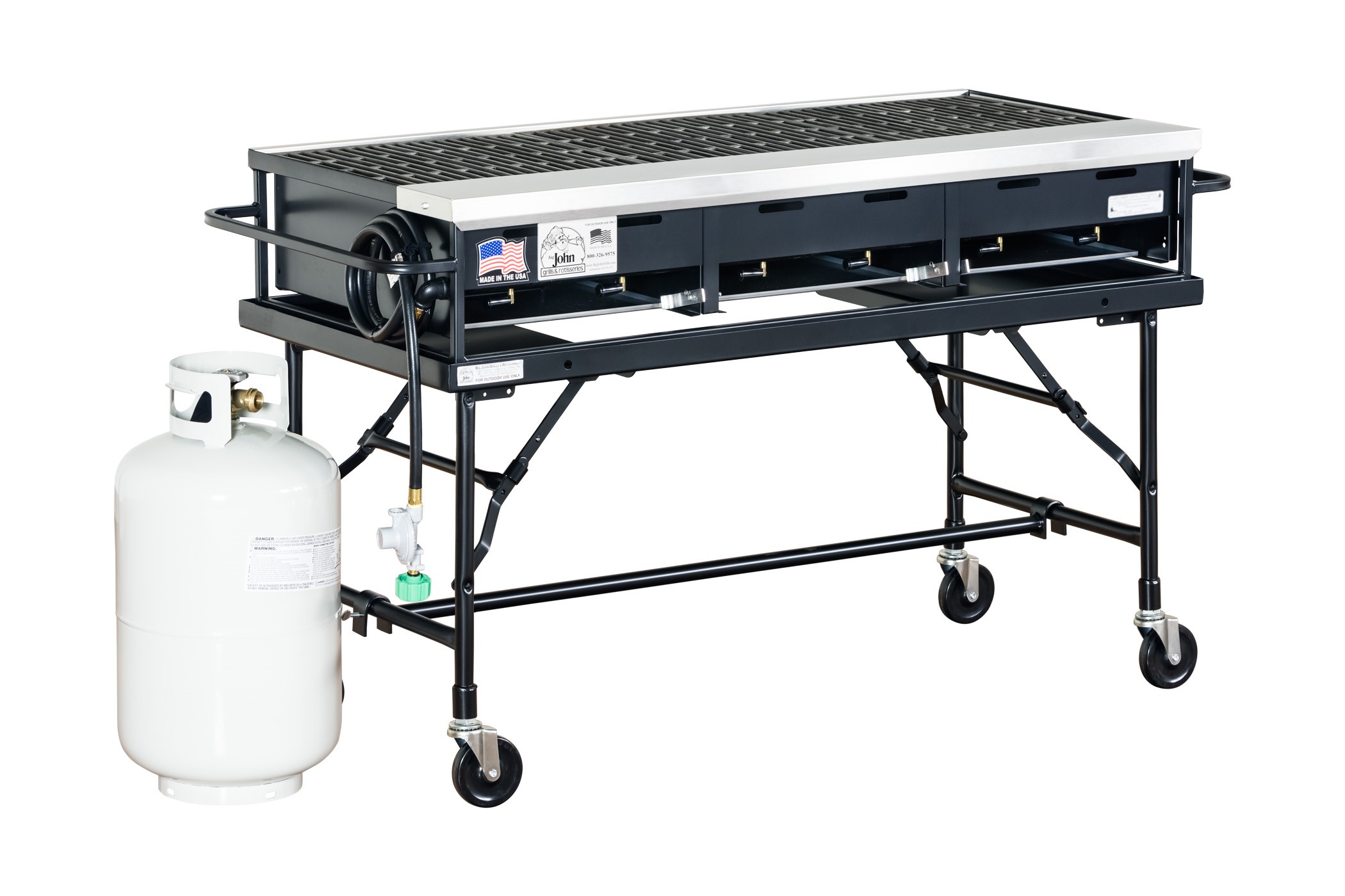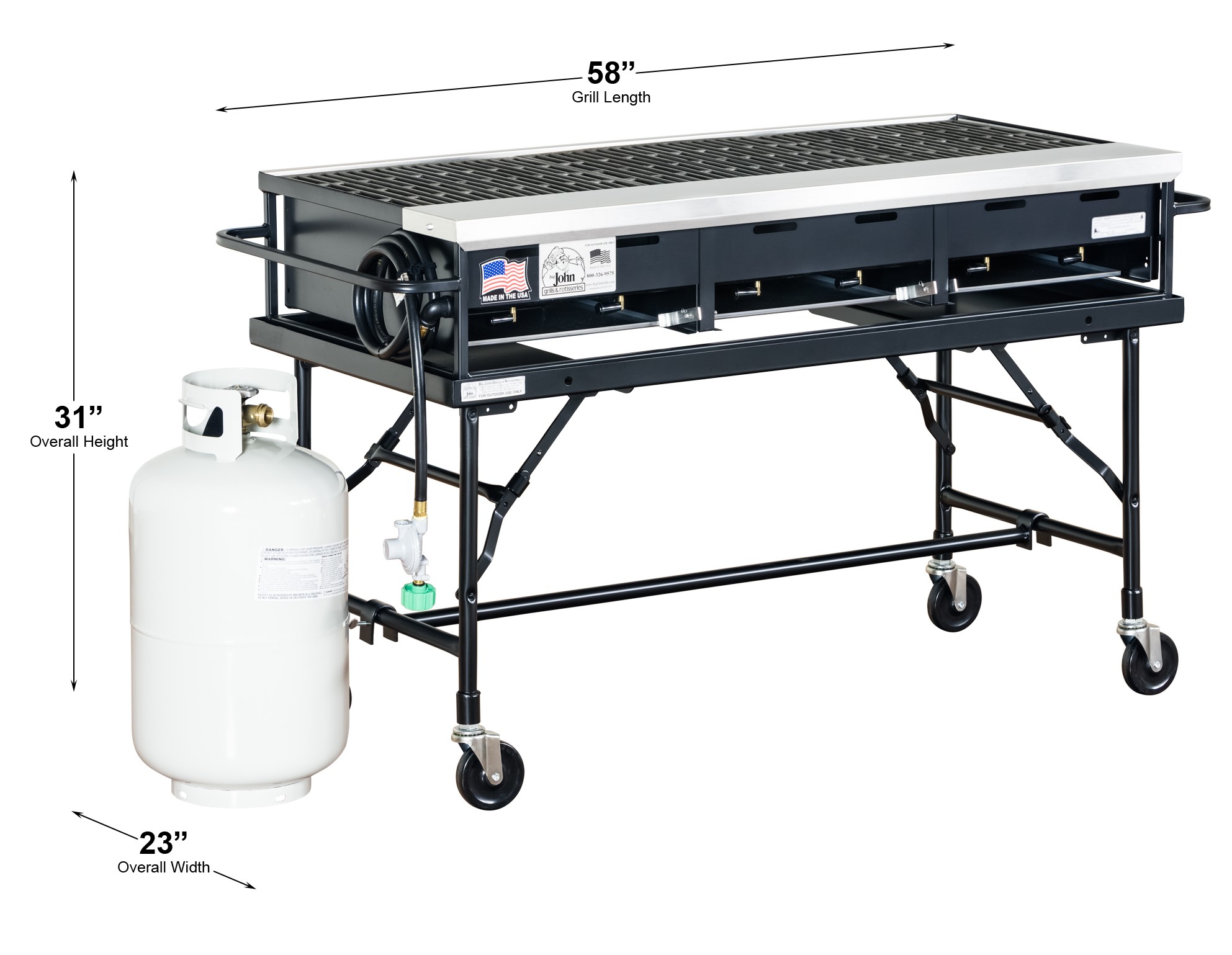 Our 58 inch, 6 burner, 120,000 BTU portable grill has a large 5.5 square foot cooking surface to feed any crowd while still small enough to fit into a minivan.
