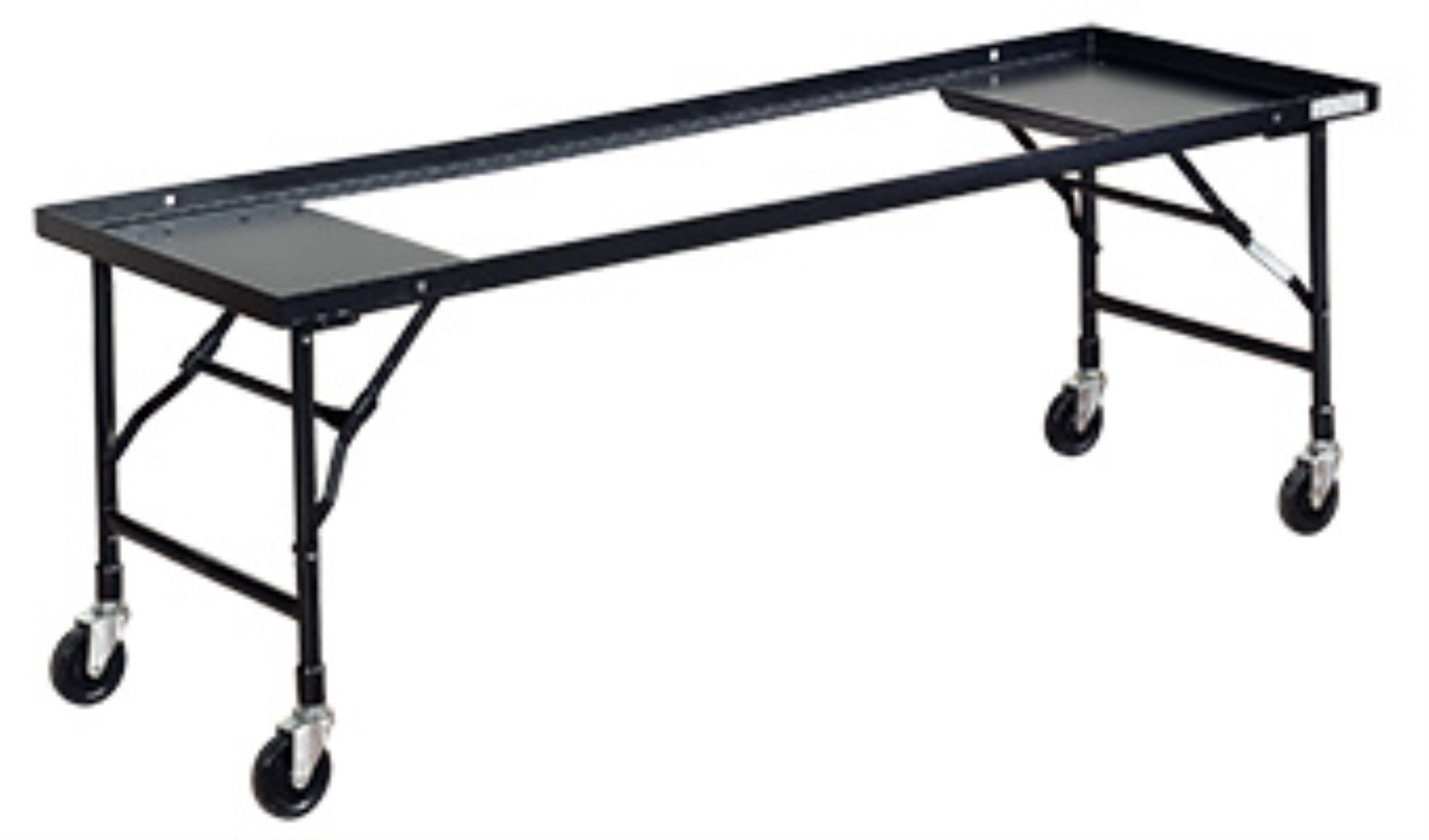 SKU: 300041Our folding leg carts feature a welded, one piece construction and are manufactured from 11 gauge carbon steel. The black powder coat finish ensures your folding leg cart will resist scratches, dings, and rust. It also features a dual locking system with easy rolling 4" casters.