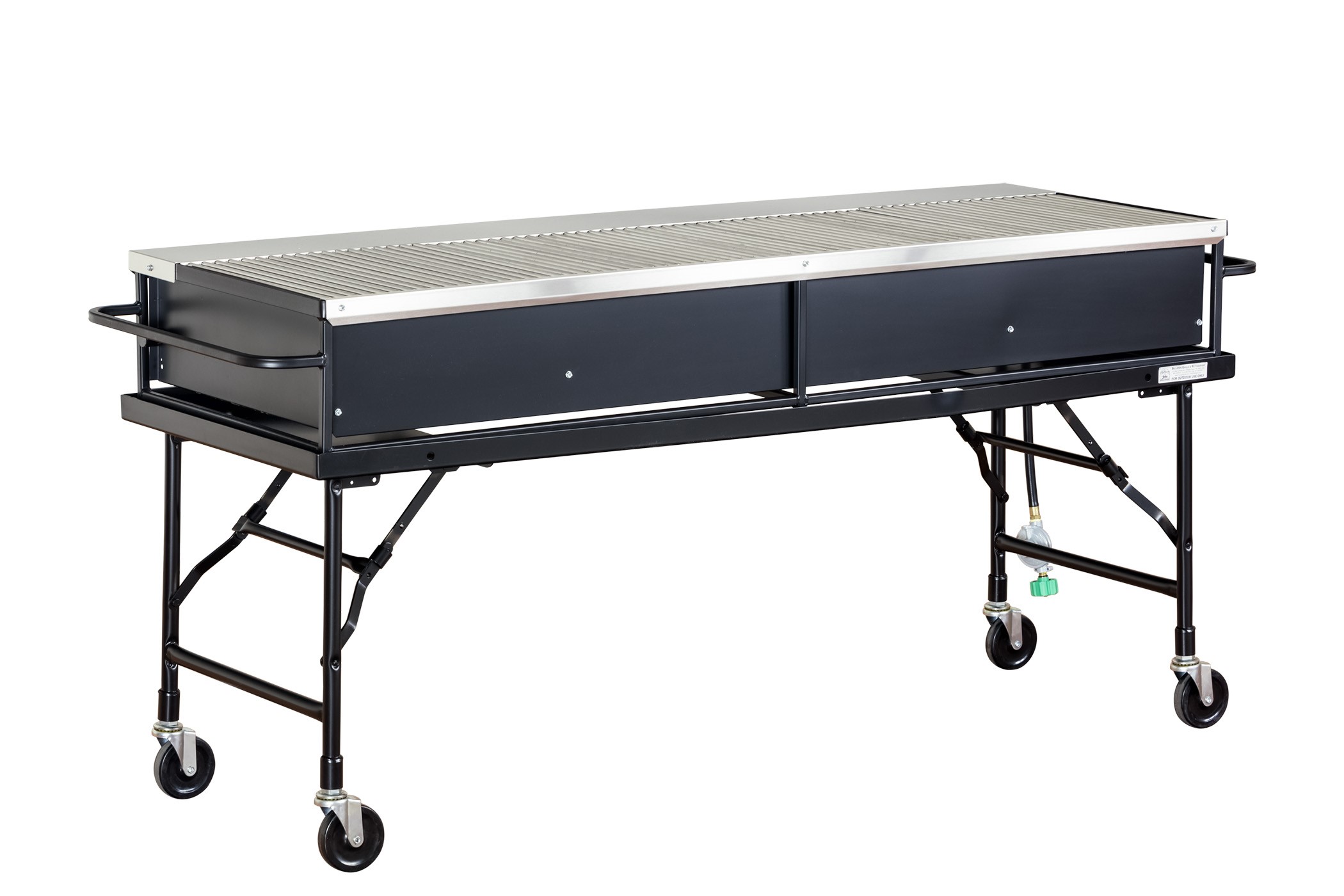 Compact by design for easy transportation and stackable storage. Ideal for anyone needing a space saving commercial barbeque grill. Choose to add a separate folding leg cart and leg brace