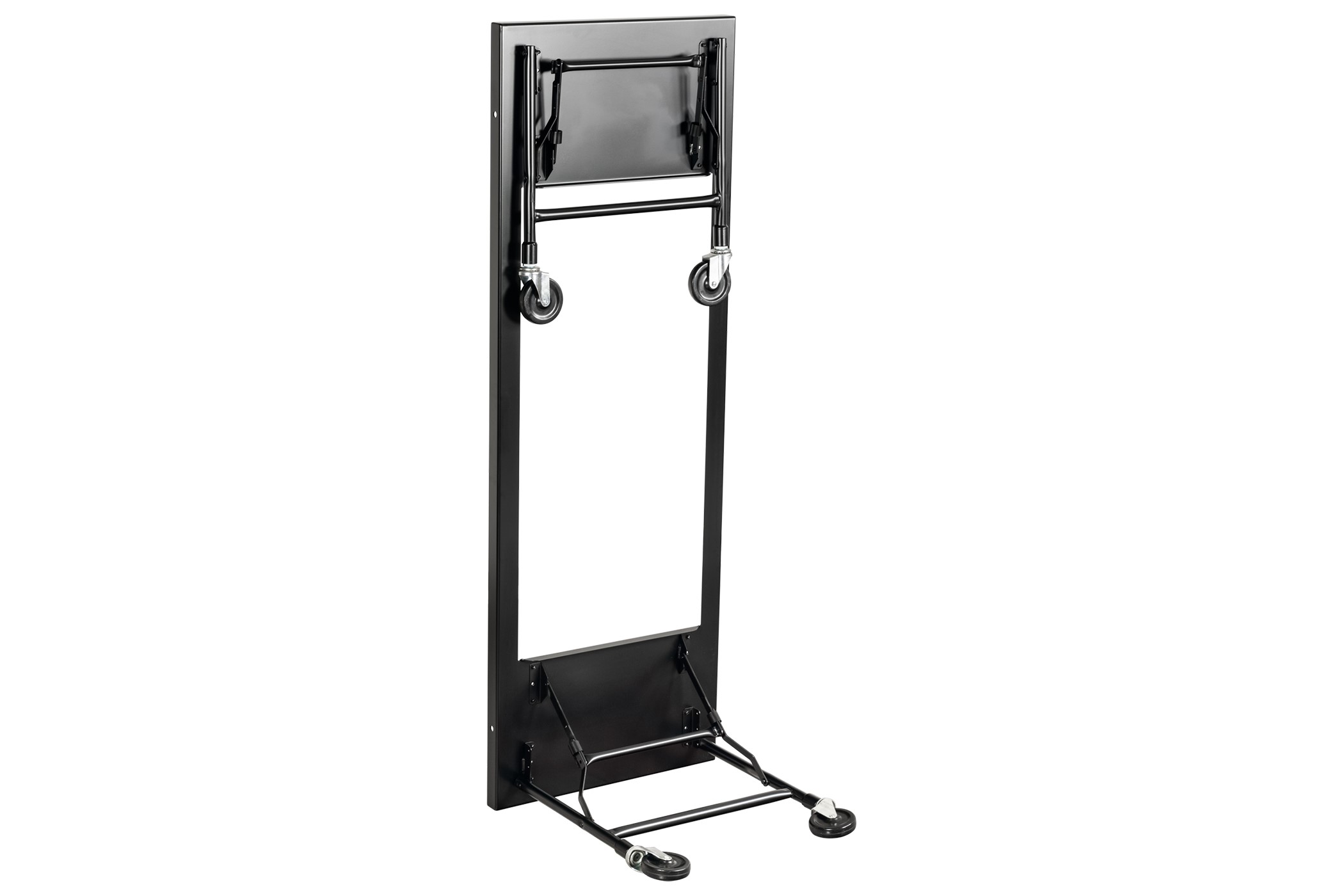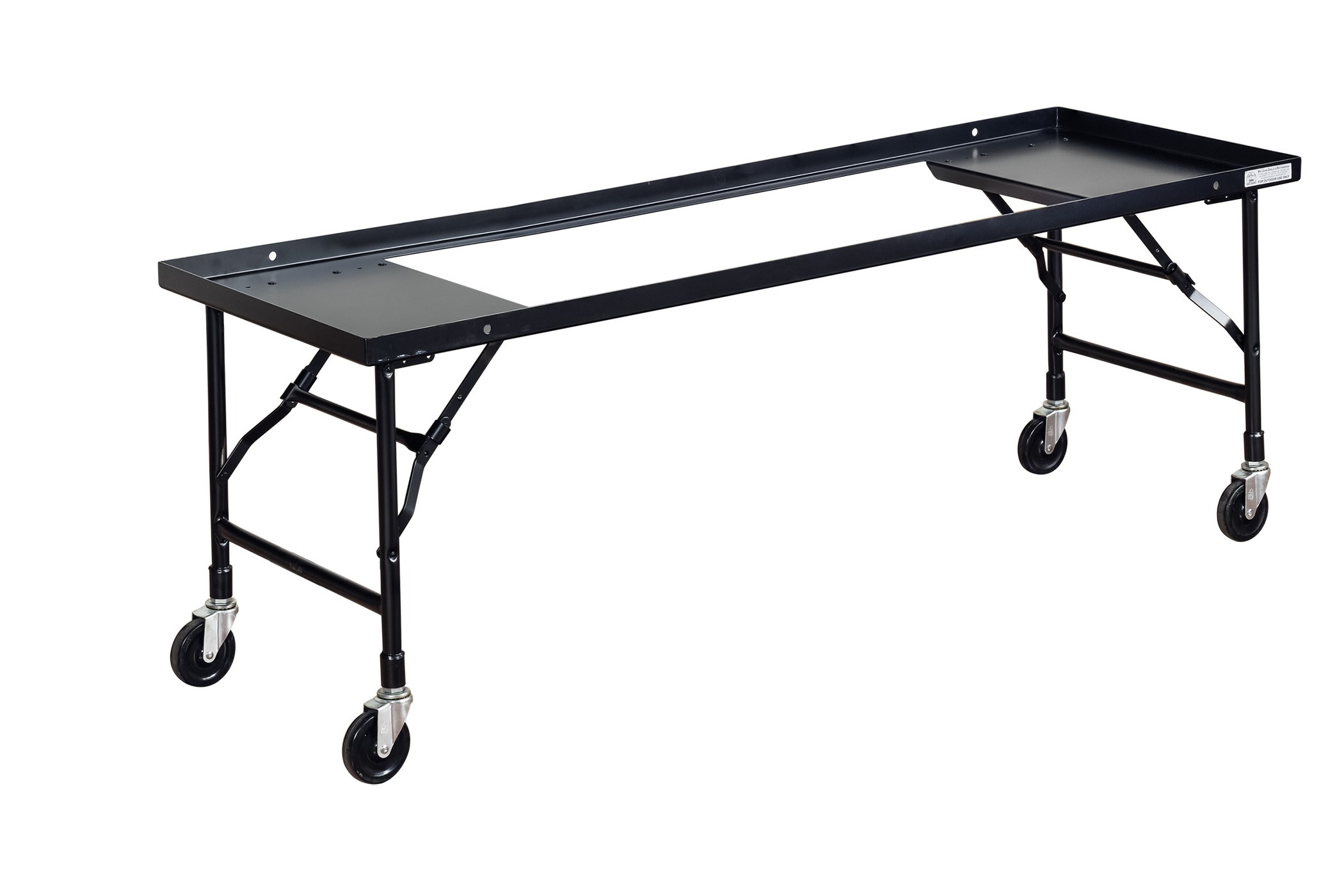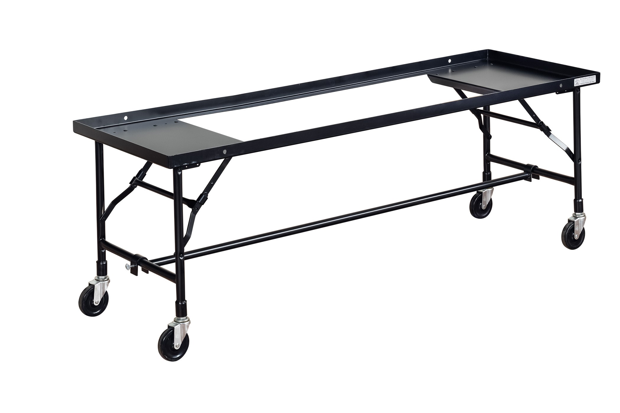 Our folding leg carts feature a welded, one piece construction and are manufactured from 11 gauge carbon steel. The black powder coat finish ensures your folding leg cart will resist scratches, dings, and rust. It also features a dual locking system with easy rolling 4" casters.