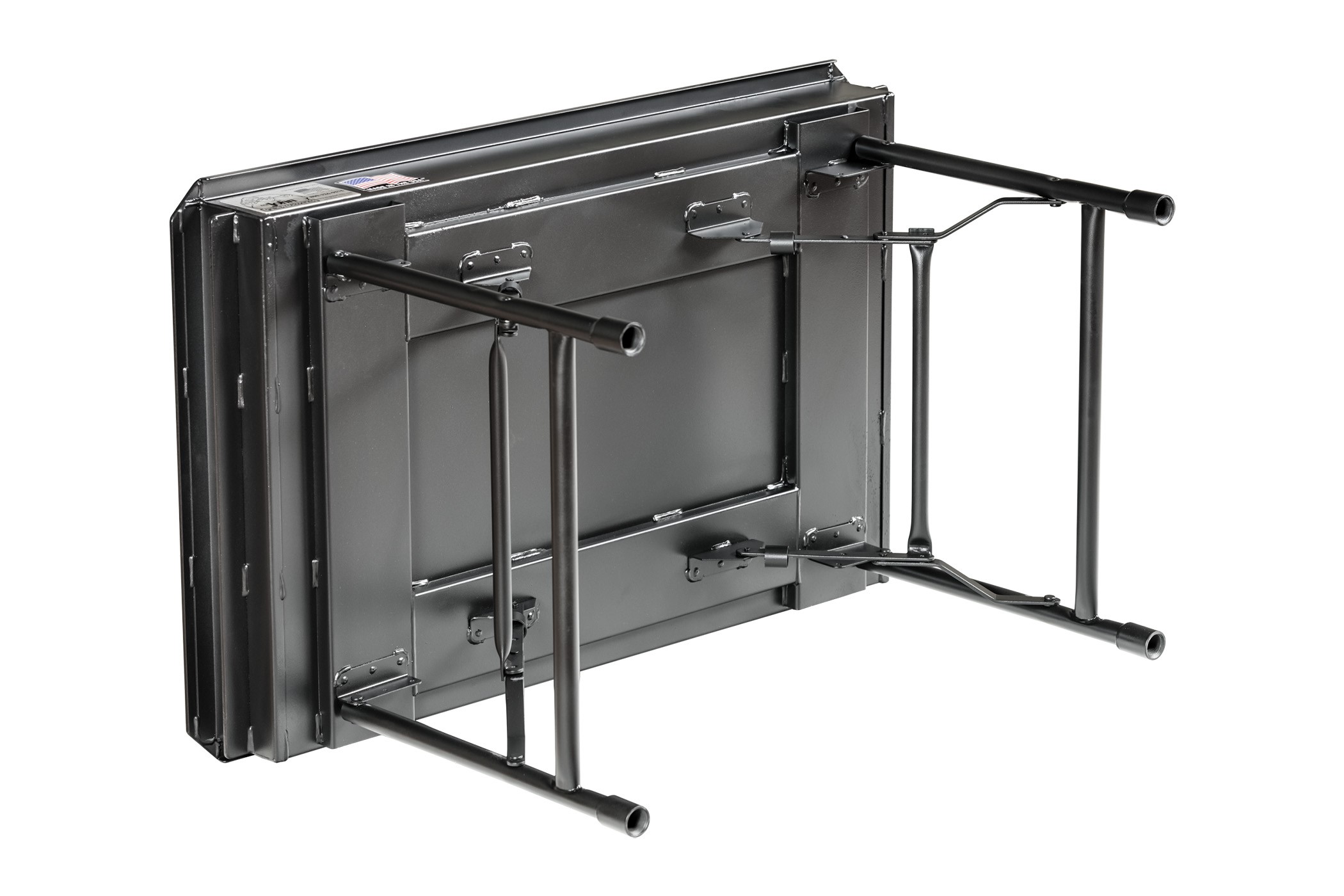 This model features 5” solid rubber casters, threaded into attached folding legs to provide stability & support for maneuvering over rough terrain without hesitation. Easily folds up for transportation and storage.