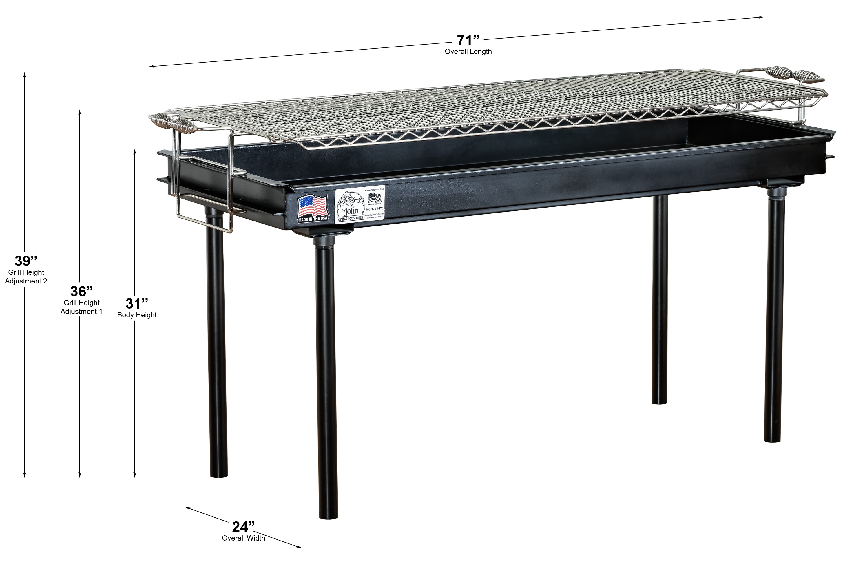 Big John set the industry standard for commercial charcoal grills when we introduced this one 54 years ago. This 2’ x 5’ has been our #1 selling charcoal grill ever since. Formerly green in color, a few originals can still be found in use.