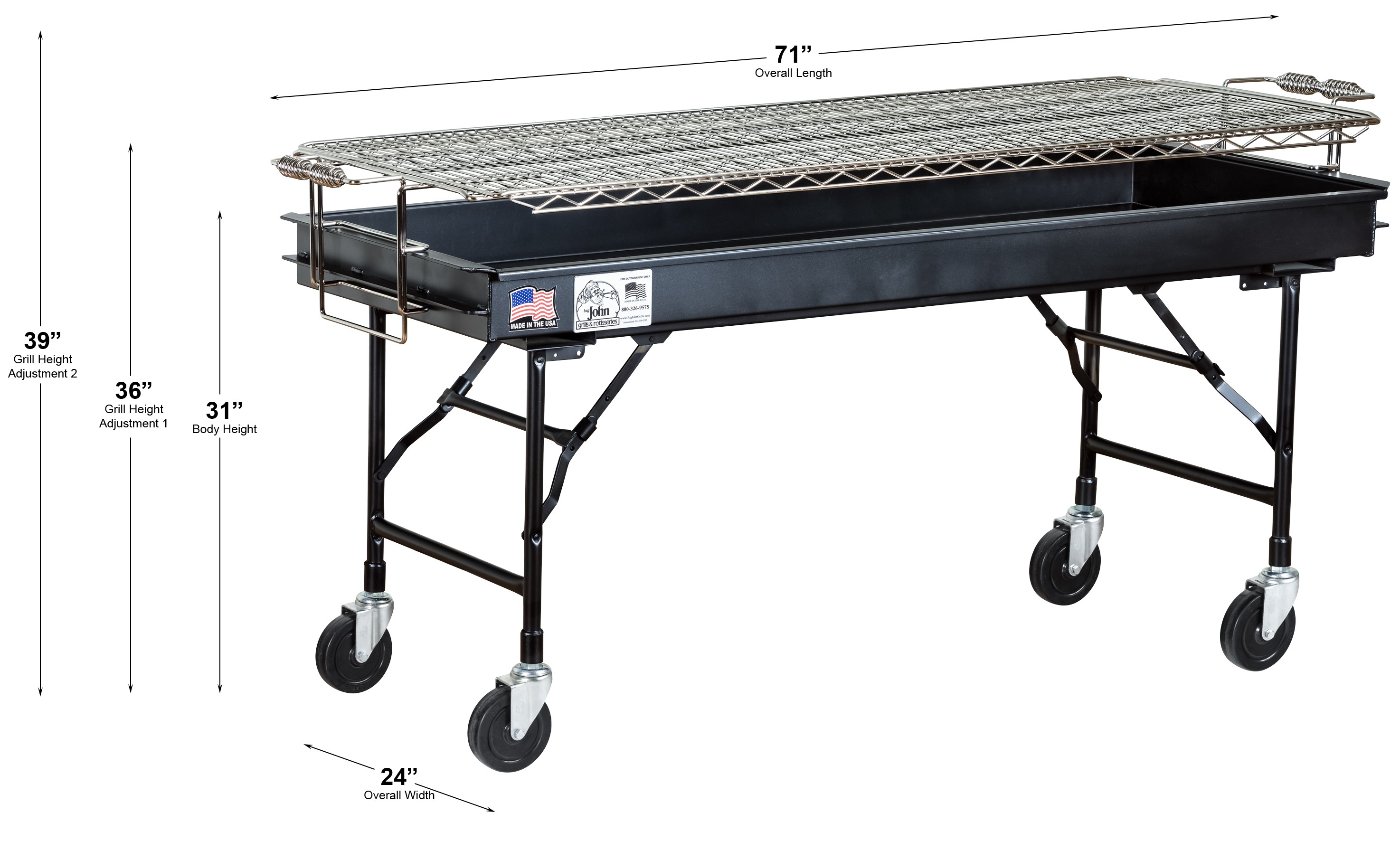 Big John set the industry standard for commercial charcoal grills when we introduced this one 54 years ago. This 2’ x 5’ has been our #1 selling charcoal grill ever since. Formerly green in color, a few originals can still be found in use.