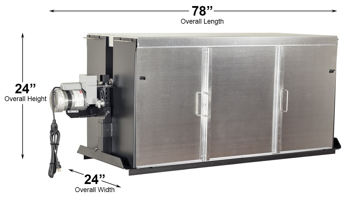 5 Panels consisting of 3 Galvanized Steel Panels and 2 Powder Coated Steel End-Panels are designed to fully enclose the M-251B to provide consistent heat and reduce cooking time by 1/3.