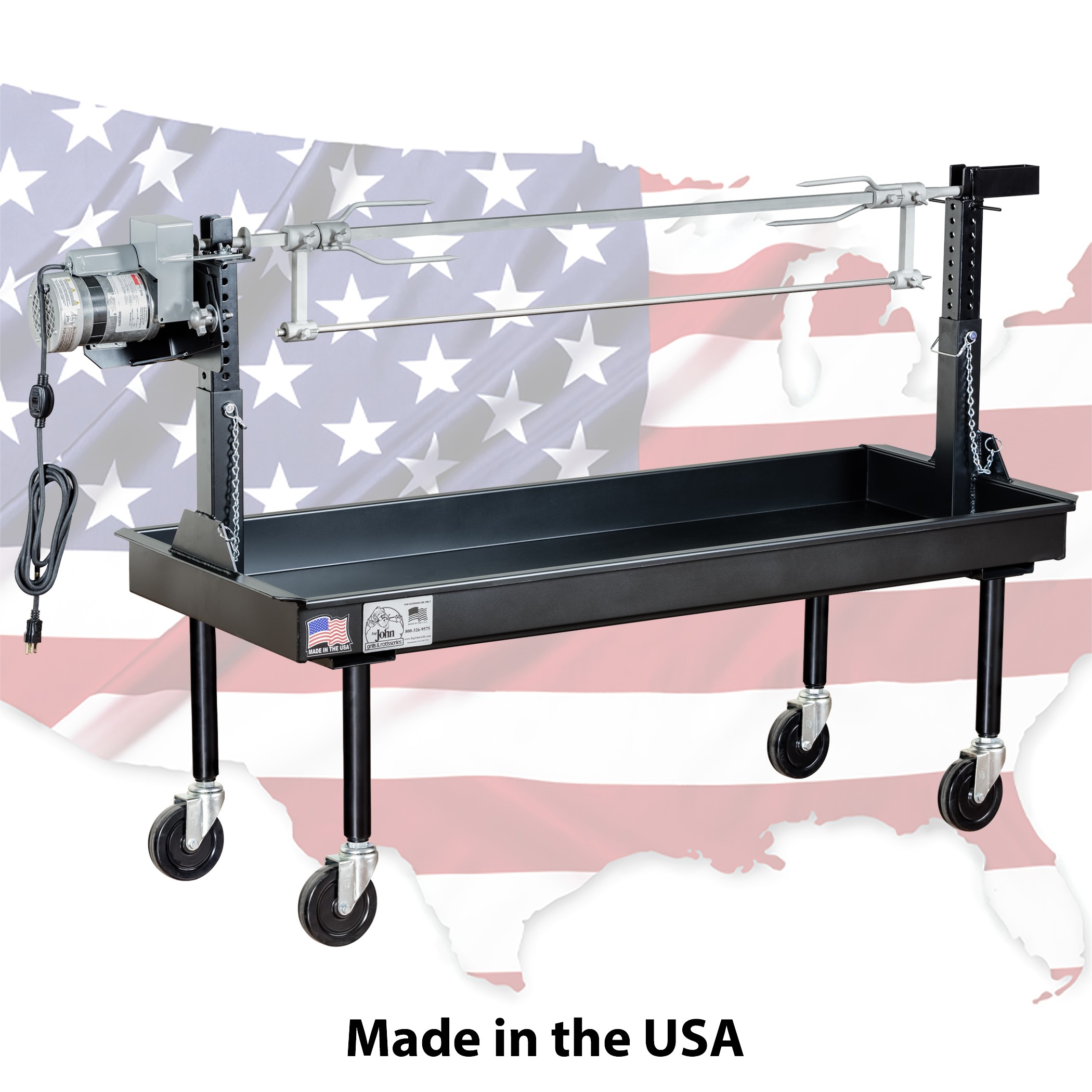 This virtually indestructible equipment utilizes spit components made from solid 304 stainless steel. Our exclusive rotisserie frame and powerful electric motor make this rotisserie tough enough to withstand the rigorous use of a barbeque professional specializing in slow-roasting whole lamb, pig, fowl, hindquarters, and other large cuts of meat. Learn More