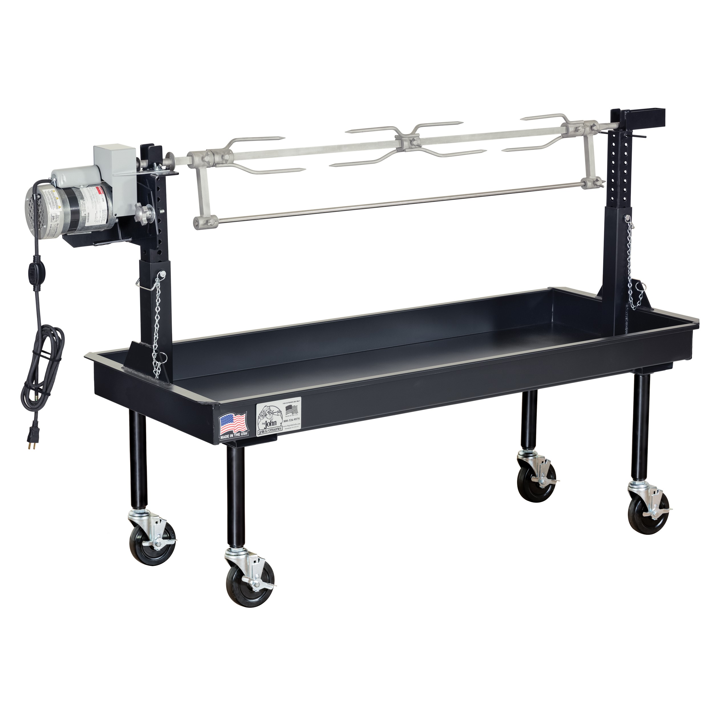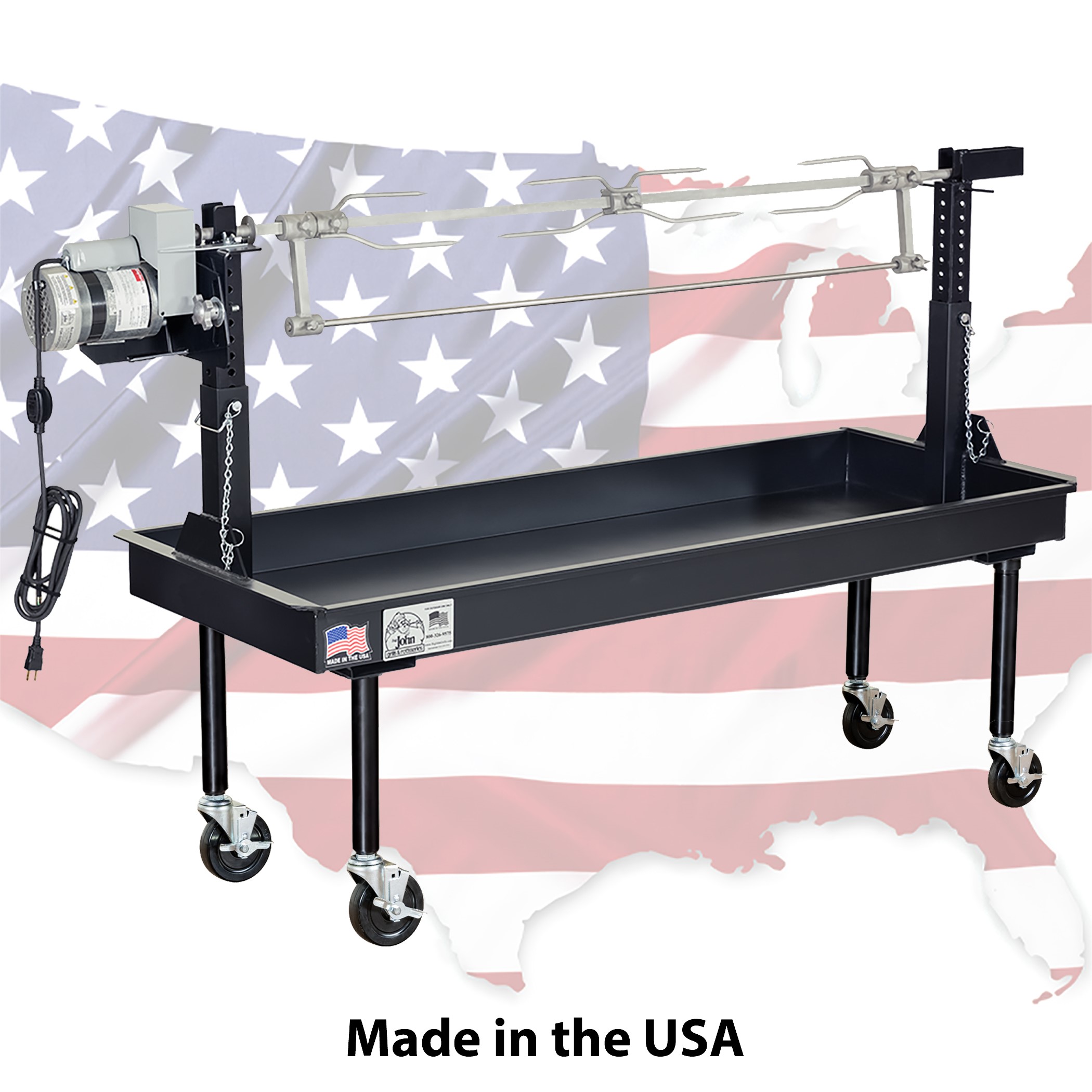 This virtually indestructible equipment utilizes spit components made from solid 304 stainless steel. Our exclusive rotisserie frame and powerful electric motor make this rotisserie tough enough to withstand the rigorous use of a barbeque professional specializing in slow-roasting whole lamb, pig, fowl, hindquarters, and other large cuts of meat. Learn More
