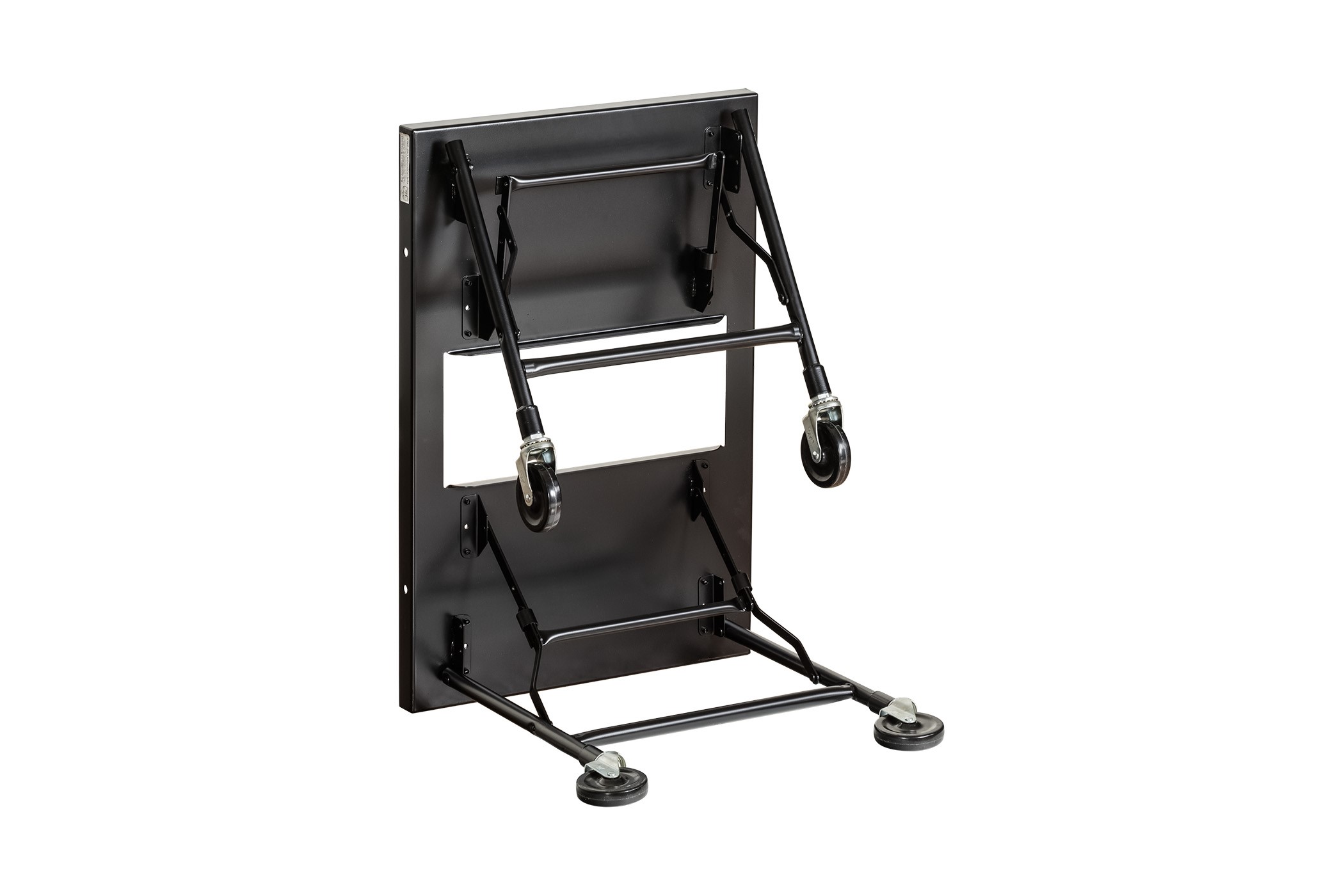 Our folding leg carts feature a welded, one piece construction and are manufactured from 11 gauge carbon steel. The black powder coat finish ensures your folding leg cart will resist scratches, dings, and rust. It also features a dual locking system with easy rolling 4" casters.