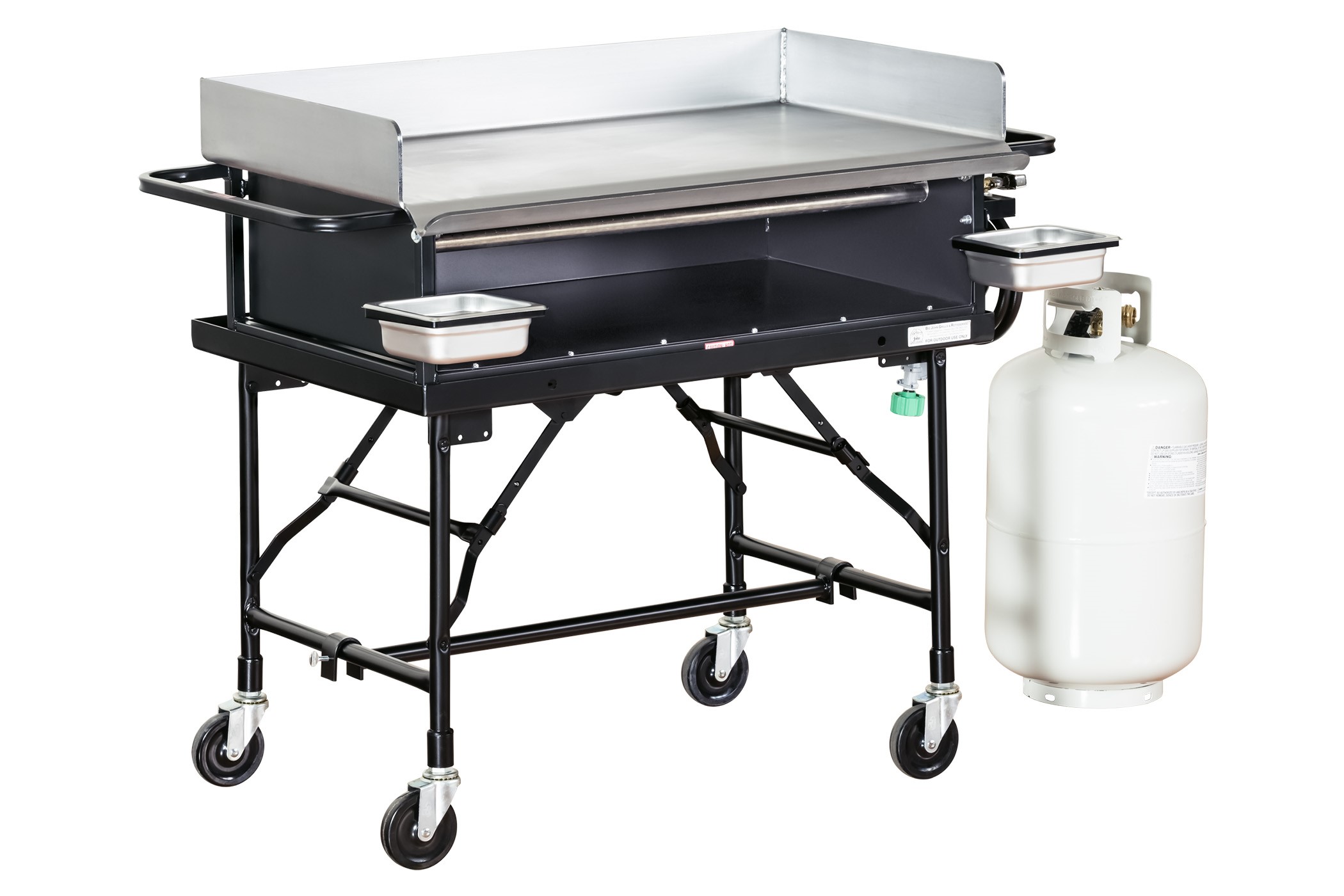 PG-36 Table Top Gas Griddle with Folding Leg Cart, Leg Brace, and Tank