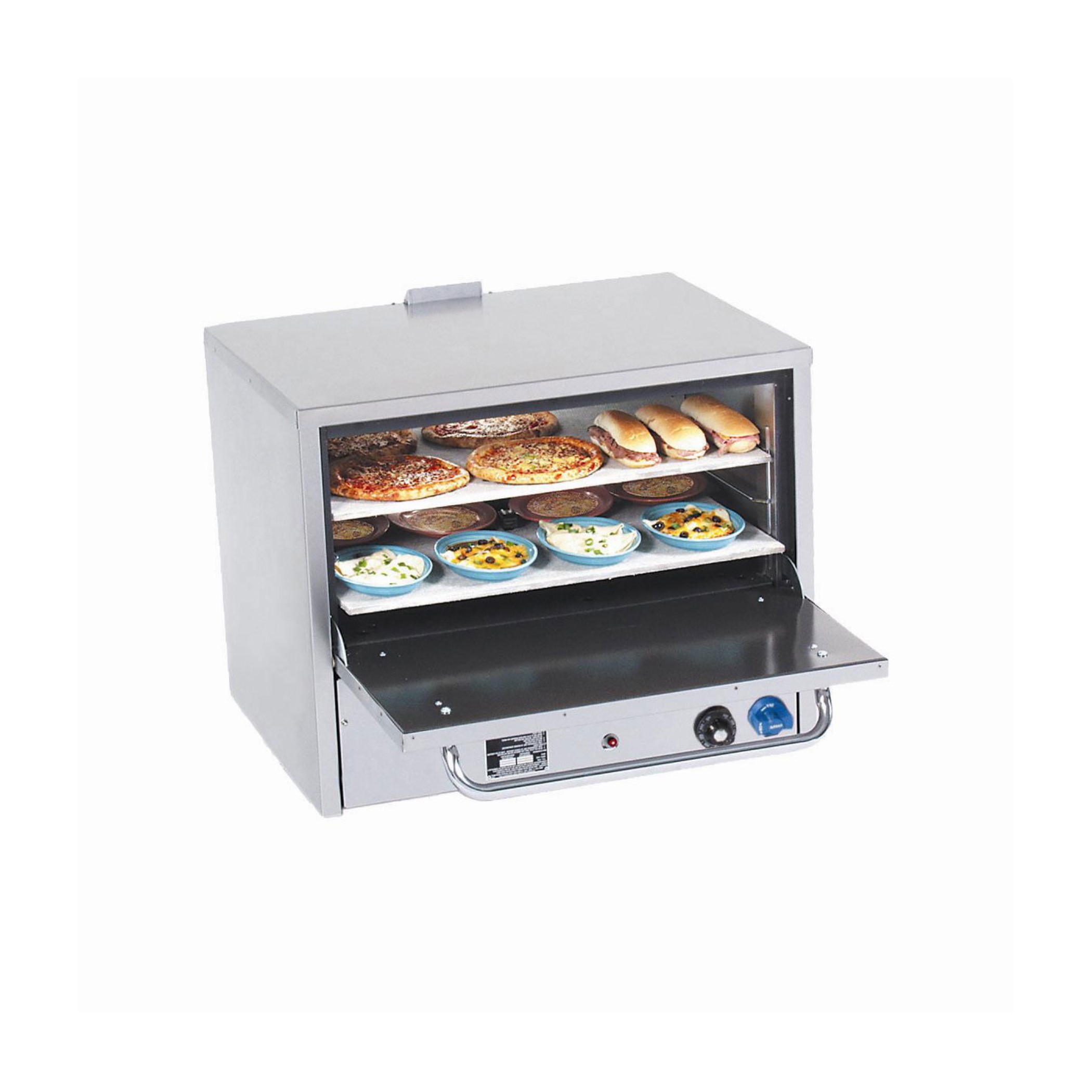 Long life, cast iron “H” pattern burner is combined with a special “V” shaped baffle directing heat for excellent air circulation. Large and medium ovens feature 30,000 BTU, small ovens feature 25,000 BTU burners.