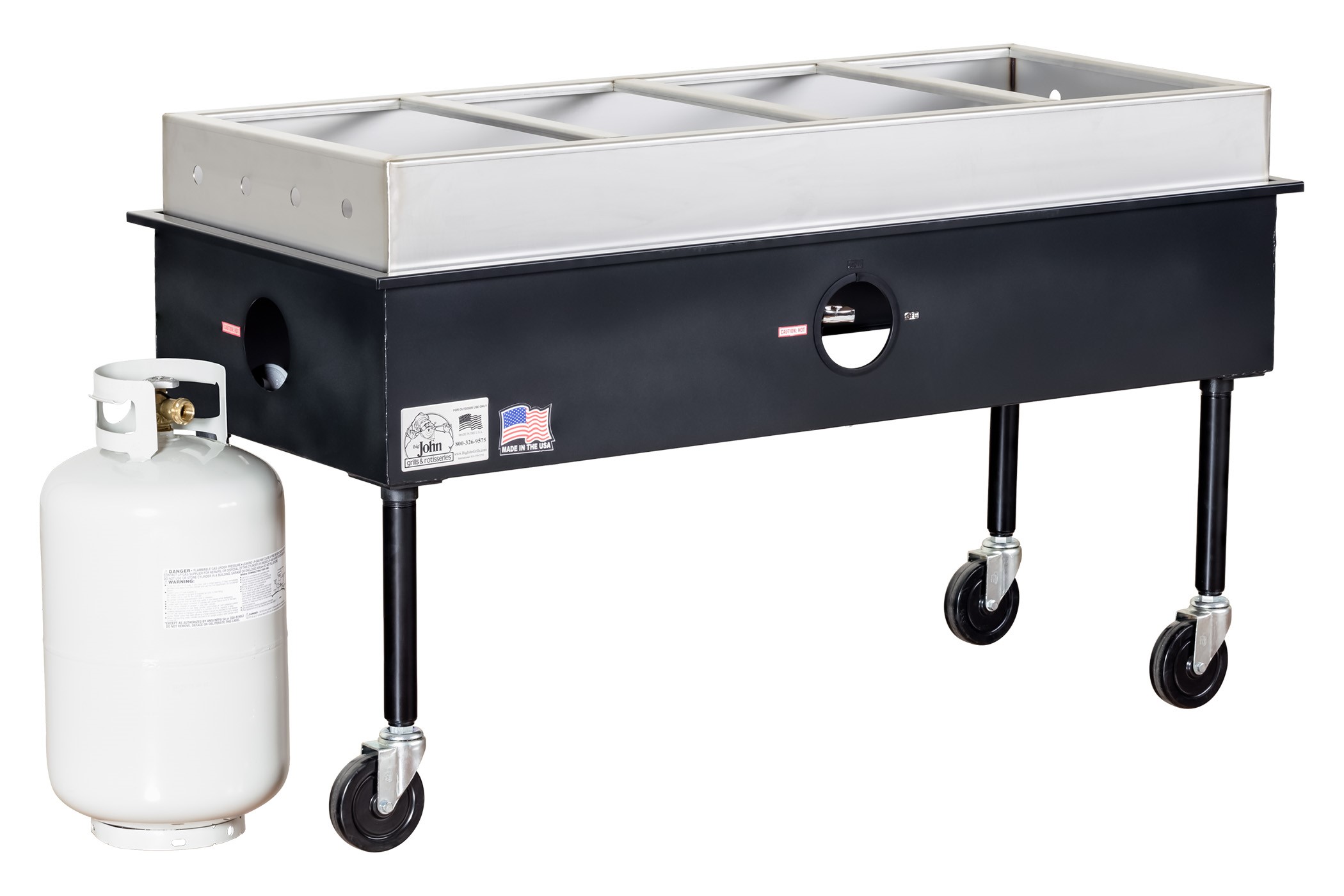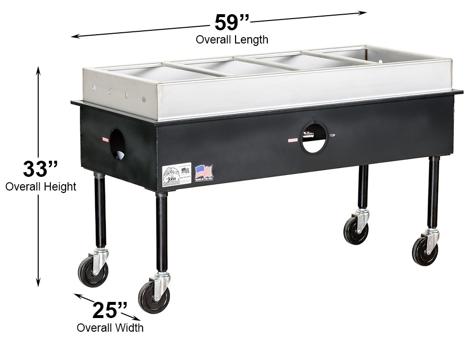Challenging outdoor conditions are no match for our steam tables. A powerful 28,000 BTU burner and enclosed base provide for fast start-ups and prevent flame-outs that frequently plague Sterno chafing dishes and similar equipment.